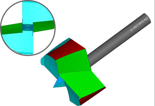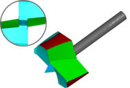 •Sonderanschliff mit 4 Zähnen/Nuten: Die 4 Hauptschneiden bestehen jeweils aus 4-Flächen-Anschliffen mit 4-Flächen-Eckenfasen. Die Hauptgruppe verfügt dabei über einem klassischen 4-Flächenanschliff, während die Nebengruppe verkürzte Zähne aufweist (analog zu einem 4-schneidigem Fräser mit 2-zum-Zentrum-Stirngeometrie).Forstner-Bohrer.•Der 2-stufige Giga-Drill besteht aus einerklassischen Mehrfasenbohrer-Geometrie.•Werkzeug: 6040017 6.1 Basis Bohrer + 6.5 GIGA